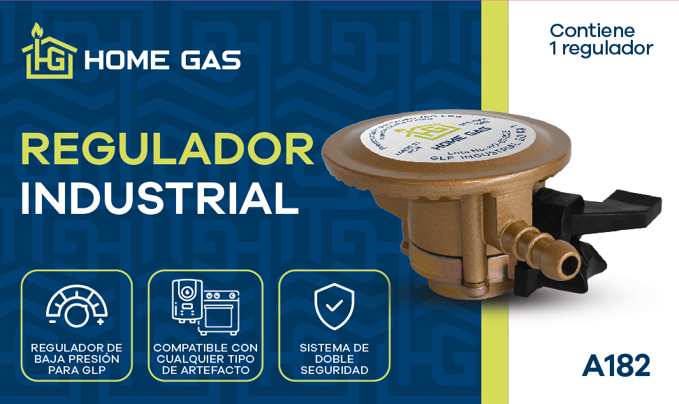 El Regulador Industrial Home Gas A182 está diseñado para aplicaciones que requieren mayor potencia y seguridad. Ofrece compatibilidad con todo tipo de artefactos industriales que funcionen con una presión de 5kg/h, garantizando un suministro confiable de gas en cualquier entorno.