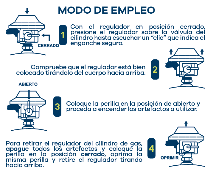 • Regulador de baja presión para cilindros GLP.