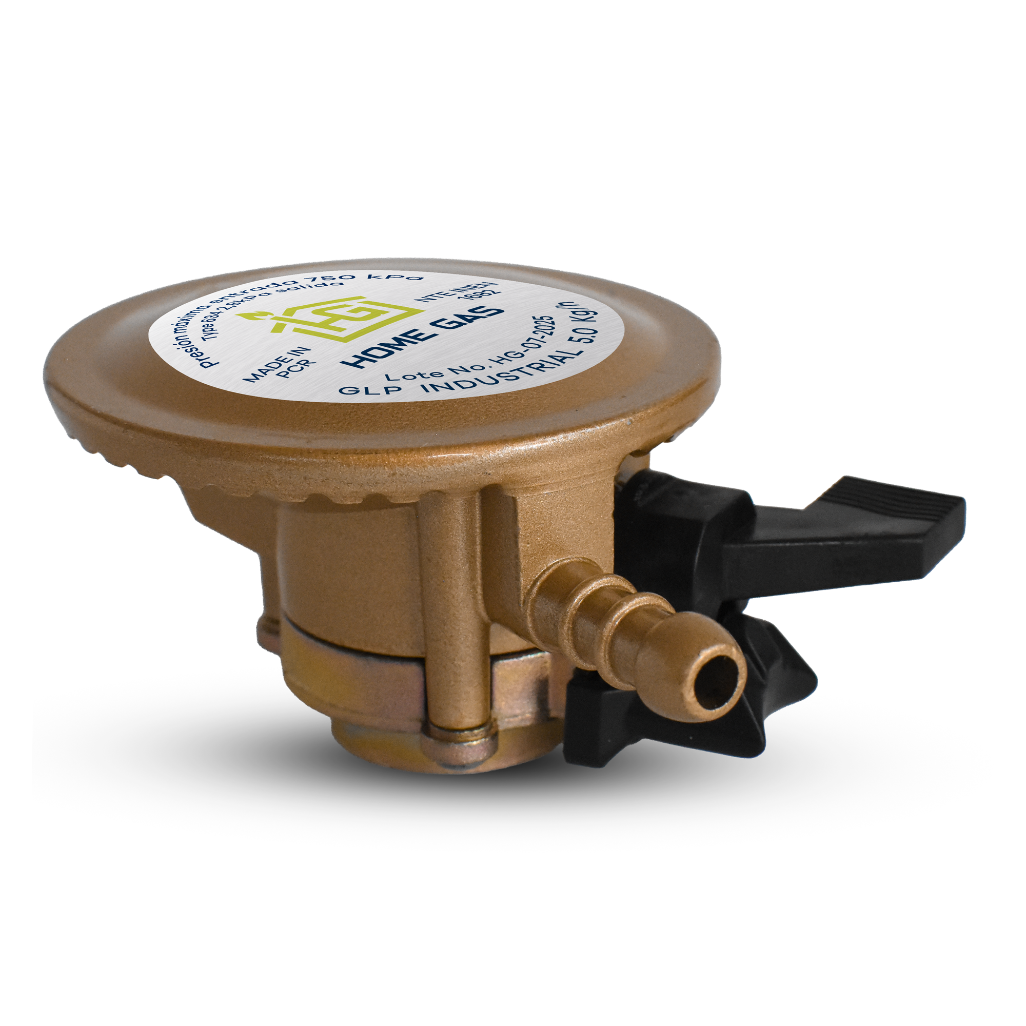 Regulador de Gas Industrial Home Gas A182. Alta resistencia, compatible con cilindros GLP y con presión de 5kg/h. Seguro y duradero.